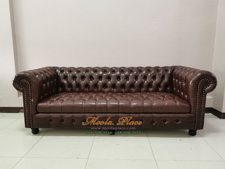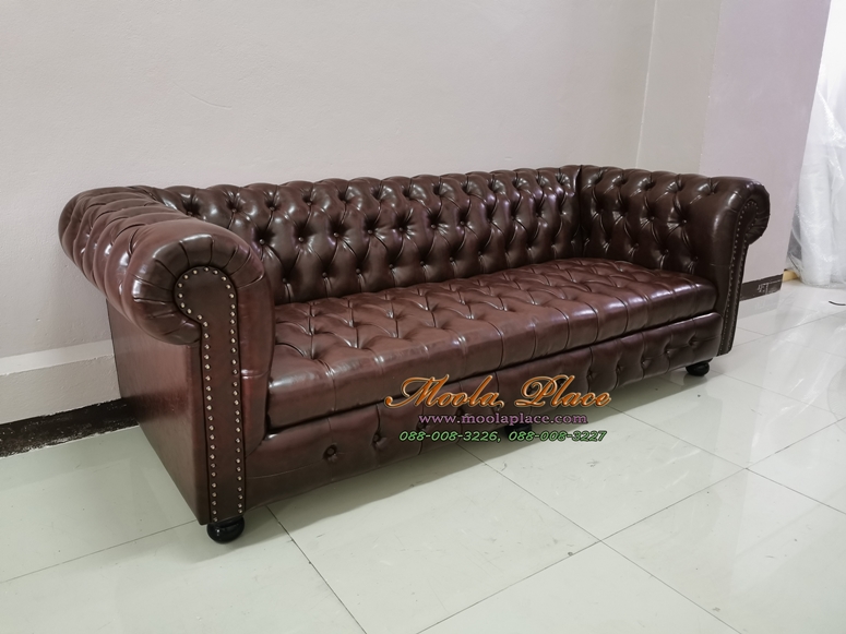 โซฟาอาร์มแชร์เย็บกระดุมพนักพิงขาหลุยส์ บุหนัง ขนาด 220 ซม. 3 ที่นั่ง ลูกค้าสามารถเลือกเปลี่..