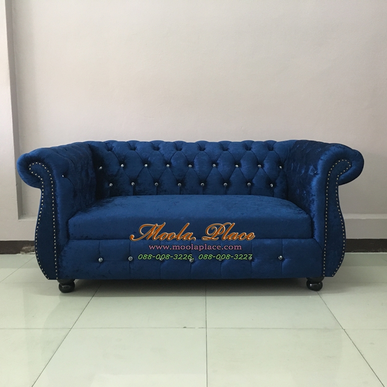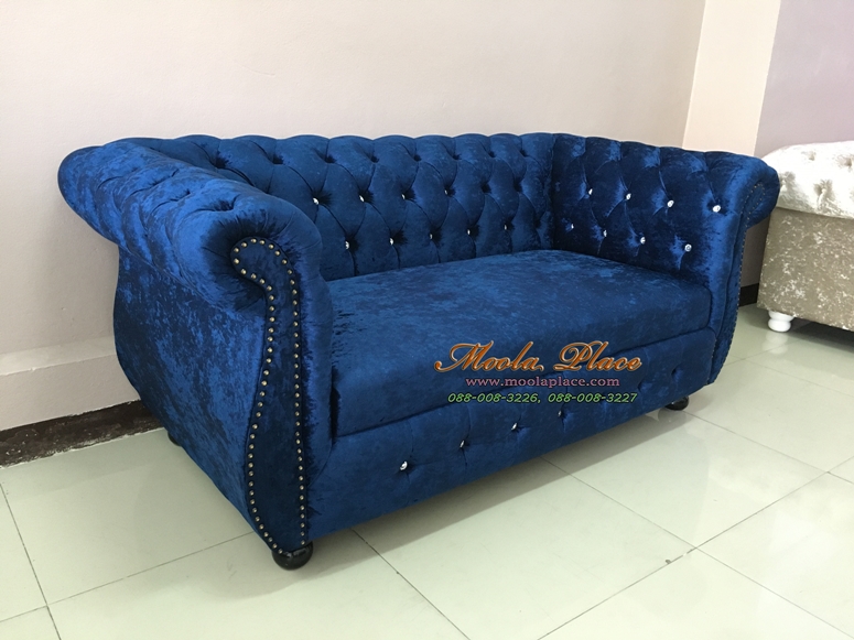 โซฟาอาร์มแชร์พนักเว้าขากลึงเย็บกระดุมคริสตัลที่พนัก บุกำมะหยี่ ขนาด 220 ซม. 3 ที่นั่ง ลูกค้..