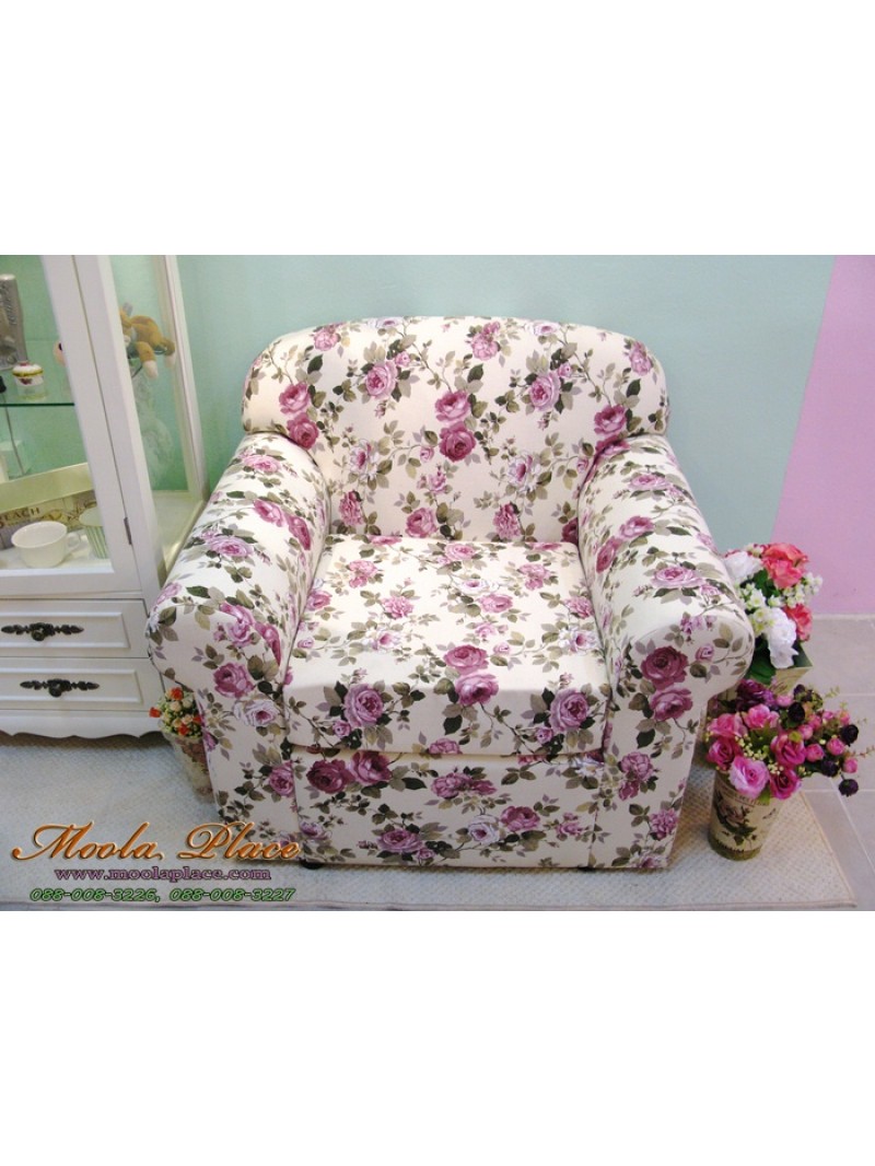 โซฟาอาร์มแชร์ผู้ใหญ่ 1 ที่นั่ง ไซส์มาตรฐาน ลายดอกกุหลาบสีชมพูอมม่วง เบาะสามารถถอดซักได้ ขนาด 90x77x76 ซม.
