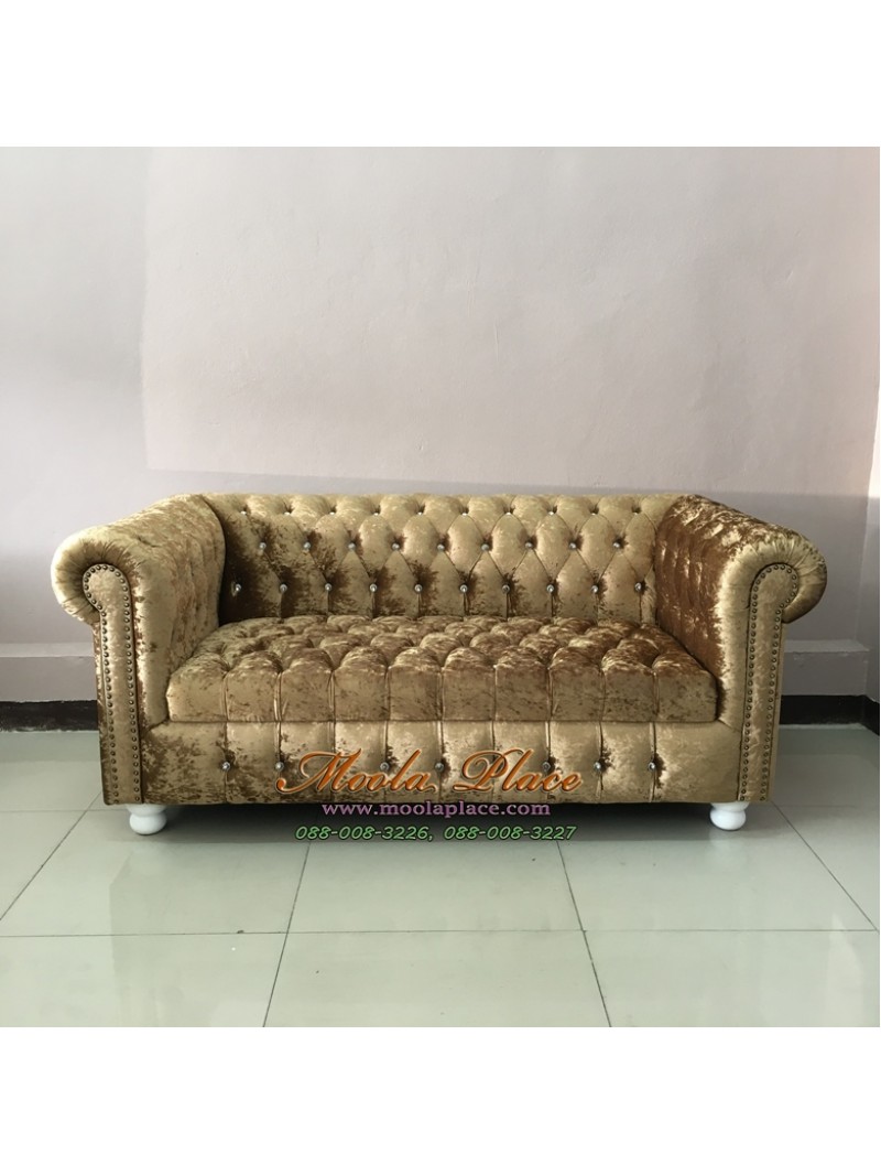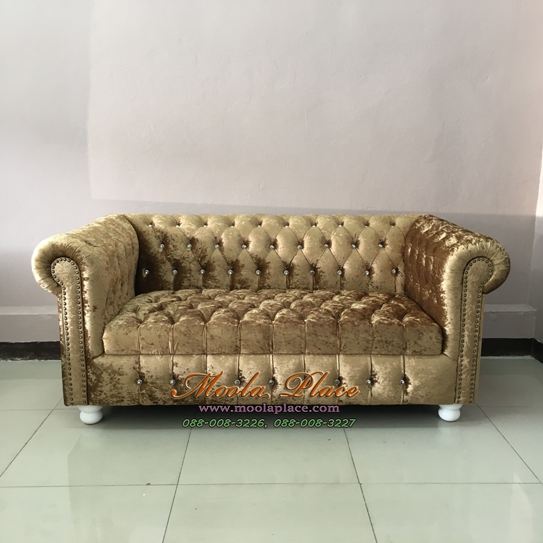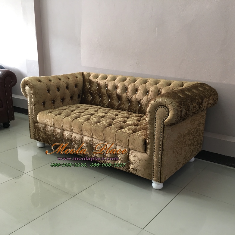 โซฟาอาร์มแชร์ขากลึงพนักนูนเย็บกระดุมคริสตัล ขนาด 220 ซม. บุผ้ากำมะหยี่ ลูกค้าสามารถเลือกเปลี่ยนผ้..