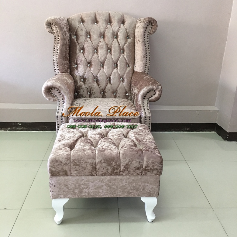โซฟา Wing Chair 2 ที่นั่ง บุผ้ากำมะหยี่อย่างดี พร้อมสตูลยาว ไม่รวมคริสตัล ขนาด กว้าง 150 x ..