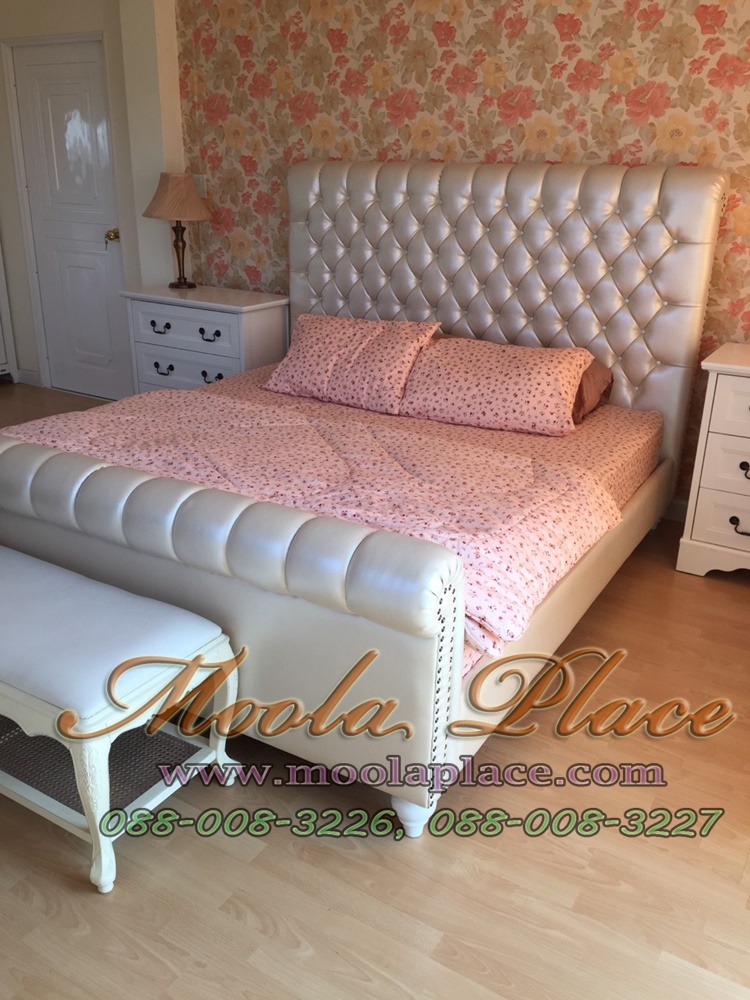 เตียงนอน หัวและท้ายขมวด ขากลึง บุหนัง PU ขนาด 6 ฟุต