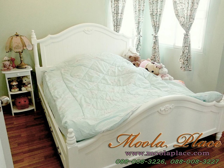 เตียงนอนสไตล์วินเทจ เพ้นท์ลาย มีลิ้นชัก ขนาด 6 ฟุต