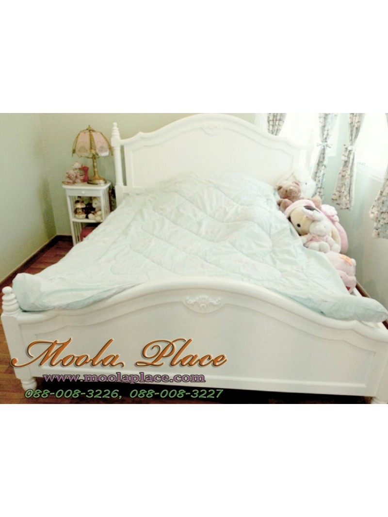 เตียงนอนสีขาว แกะสลักลาย มีลิ้นชัก ขนาด 6 ฟุต กรณีไม่เอาลิ้นชักลดราคา 3,000 บาท เหลือ 24,000 บาท