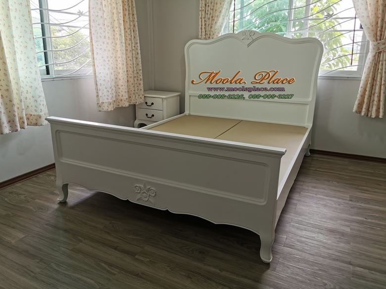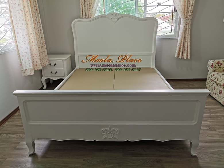 เตียงนอนสไตล์วินเทจ แกะลายรูปโบว์หัวเตียง ขนาด 6 ฟุต