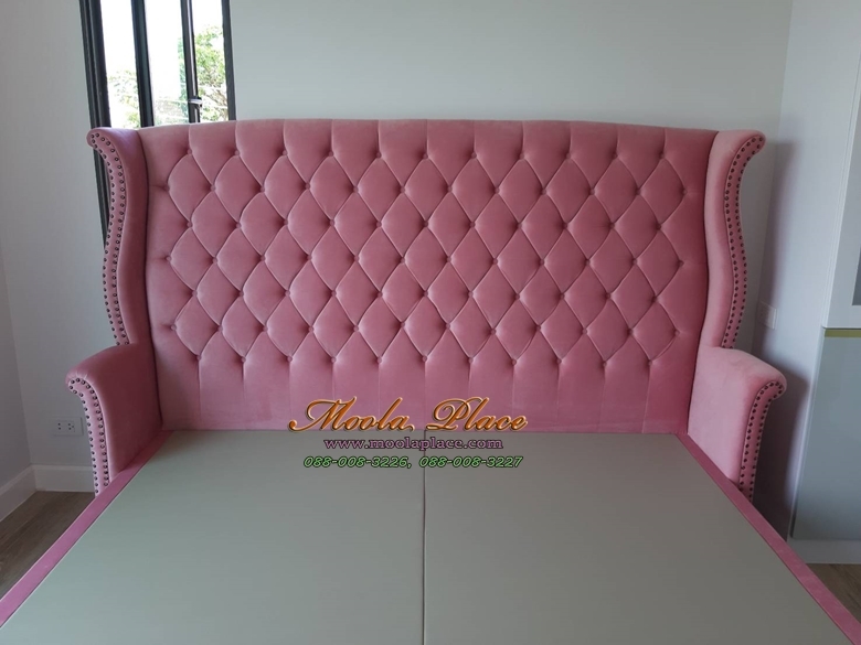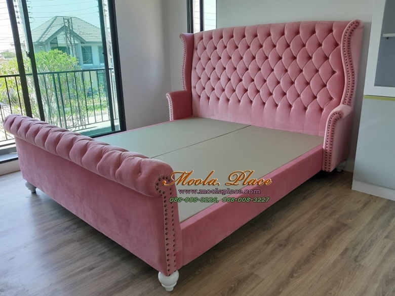 เตียงนอนสไตล์วินเทจ พร้อมบุกำมะหยี่หัวเตียงหัว ขนาด 5 ฟุต
