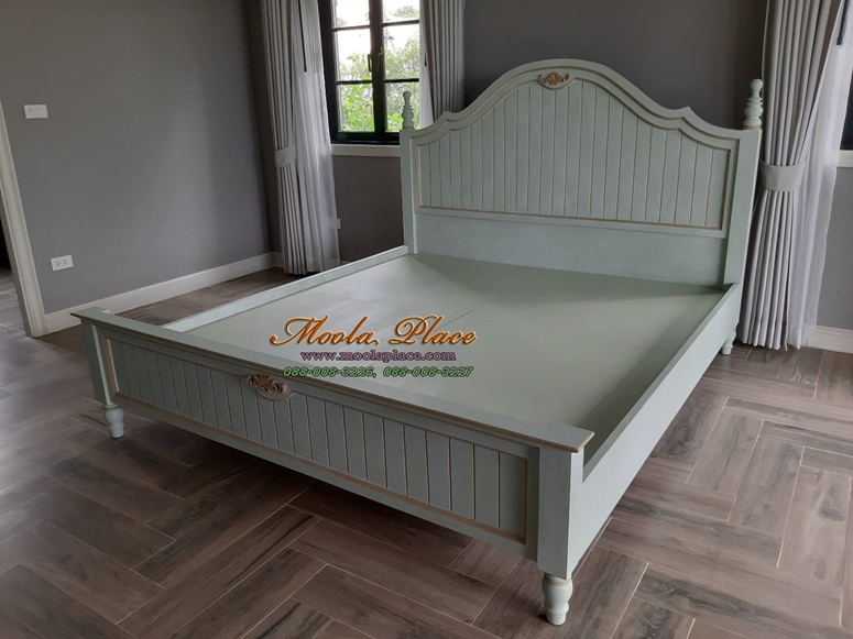 เตียงนอนสไตล์วินเทจ เพ้นท์ลาย มีลิ้นชัก ขนาด 6 ฟุต